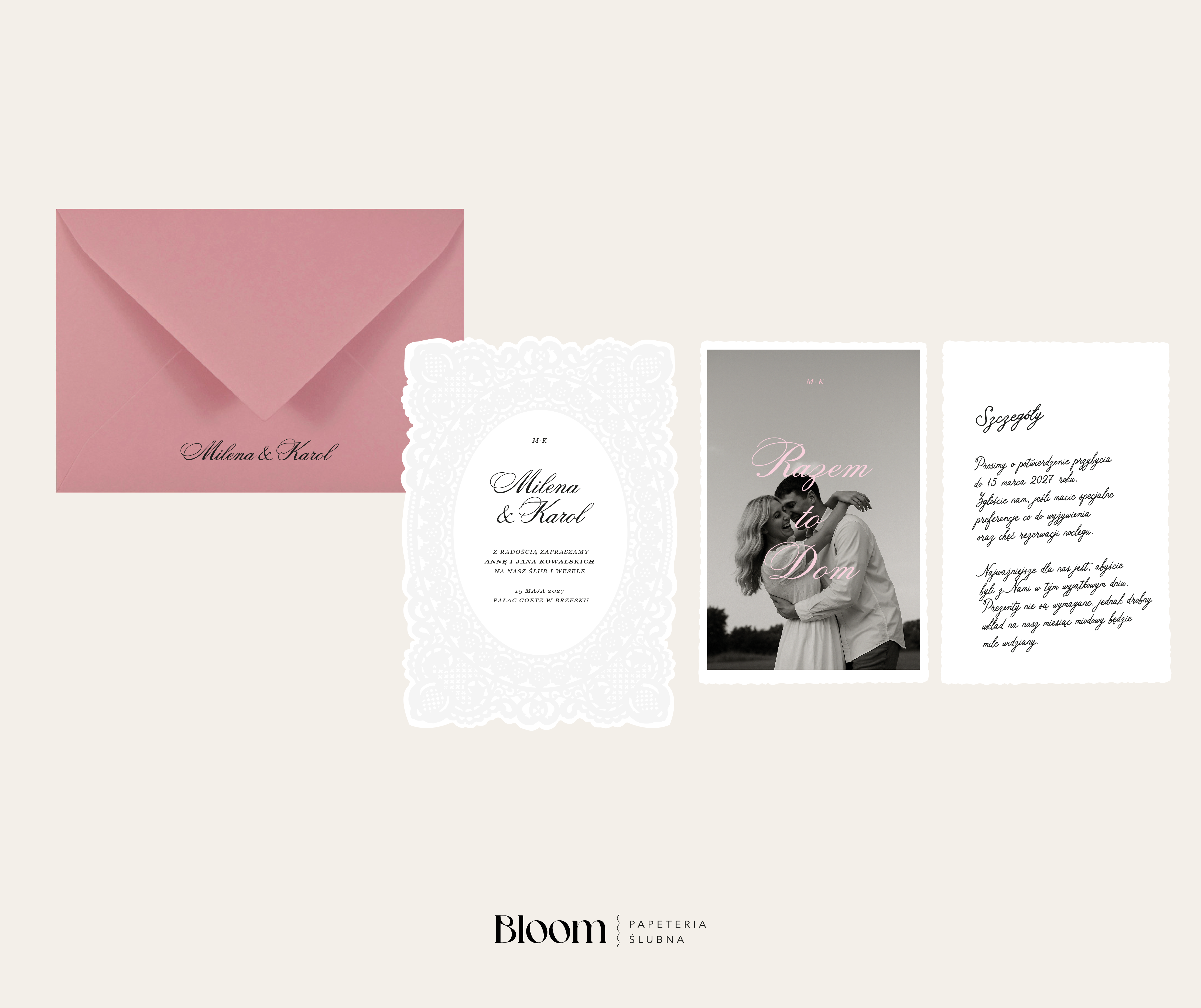 • koperta z nadrukiem waszych imion w wybranym kolorze.