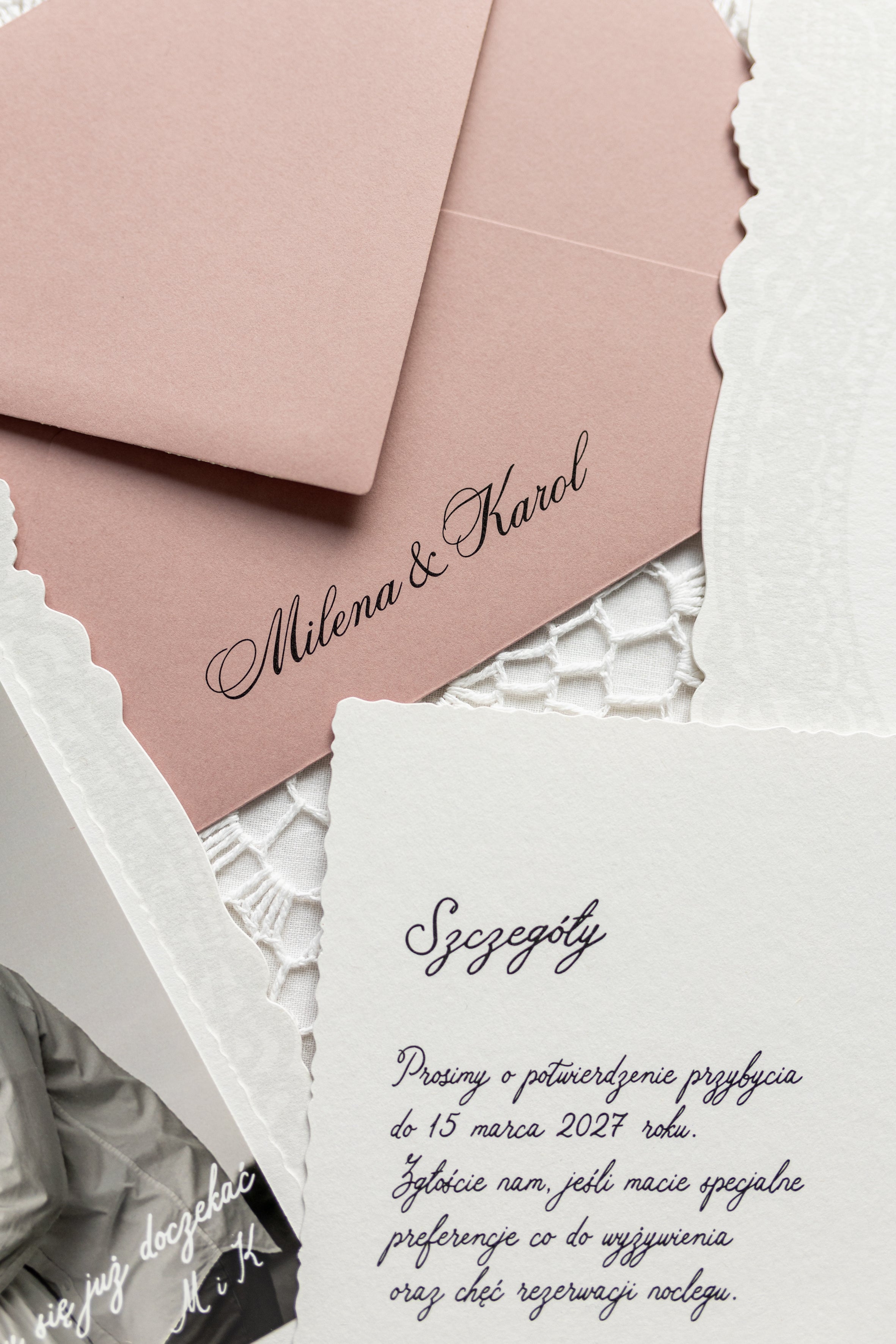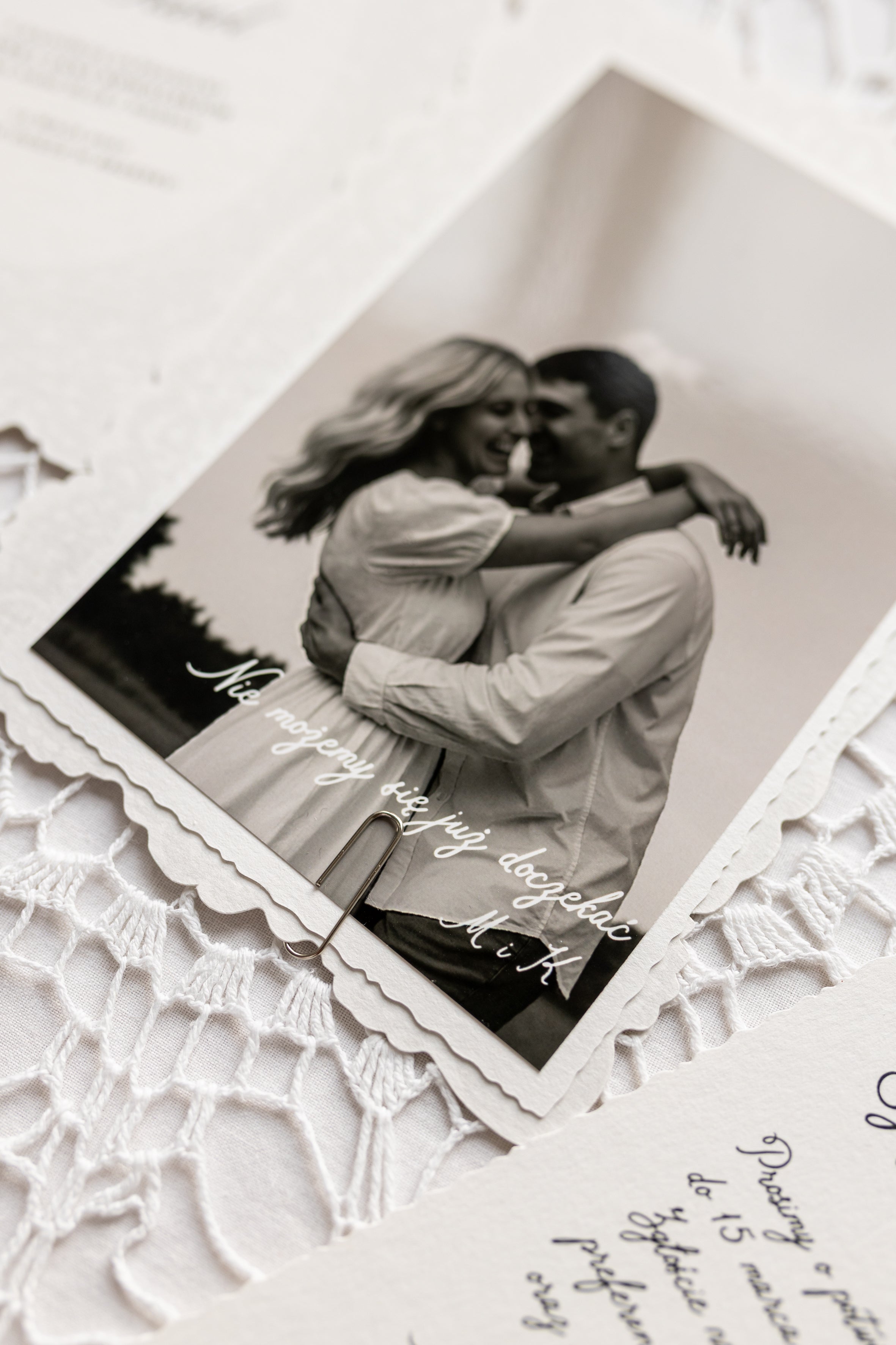 • karta dodatkowa stylizowana na stare zdjęcie z rodzinnego albumu – z jednej strony możecie umieścić wasze zdjęcie, a z drugiej odręcznie wyglądający tekst RSVP lub szczegóły dotyczące wesela,